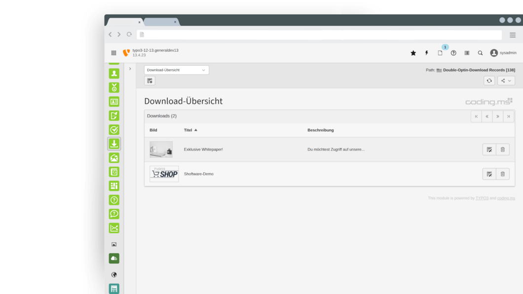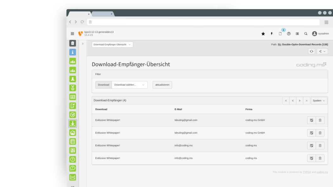 - Backend-Modul zur Verwaltung von Download und Empfänger Datensätze