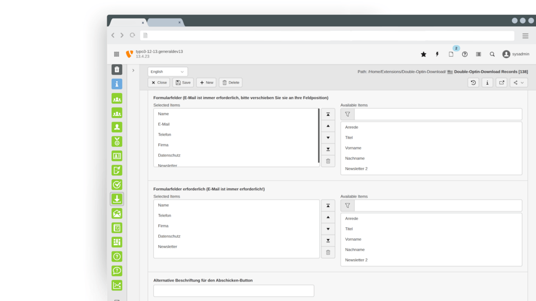 - Redaktionelle Konfiguration des Download-Formulars durch einfaches Zuweisen vorgefertigter Felder