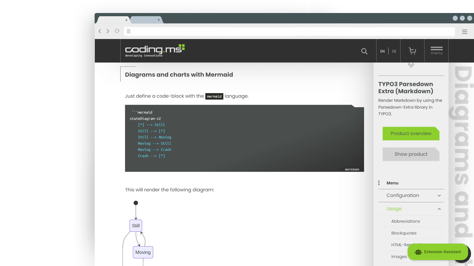 - Diagramme und Charts via MermaidJS