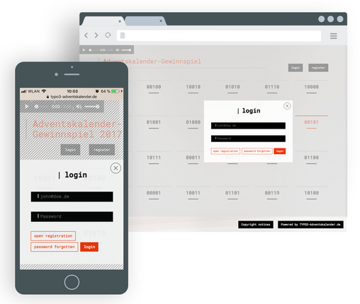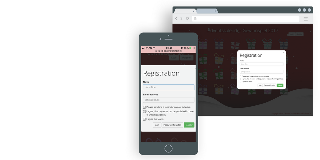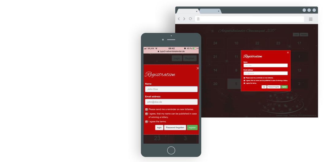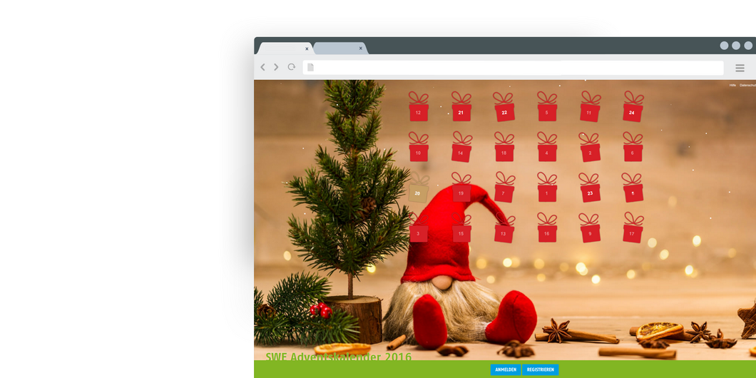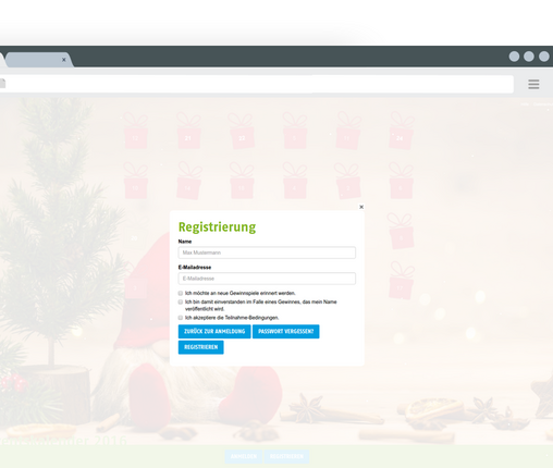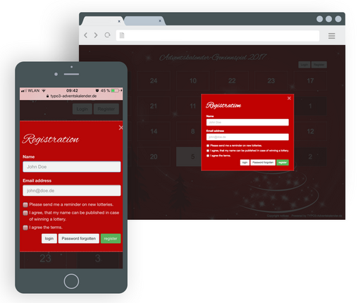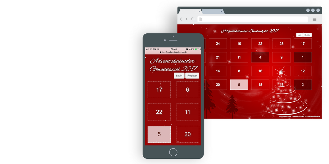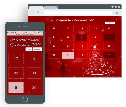 Simply choose the best theme for your company and benefit from many useful features, such as animated snow falling across the calendar display and content hidden behind doors. Content types include simple text-image combinations, text only, image only and, of course, forms that can be used for various purposes.