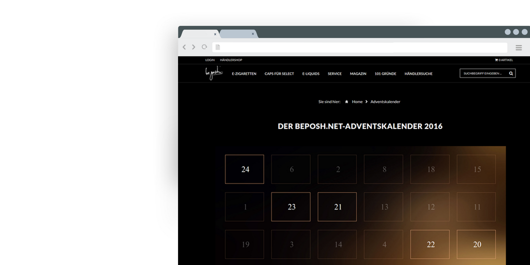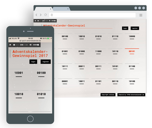 The calendar is responsive - on large displays, for example, 6-4 doors are displayed in a row. On smaller displays this goes down to two doors next to each other. More responsive behavior can easily be added using CSS media queries.